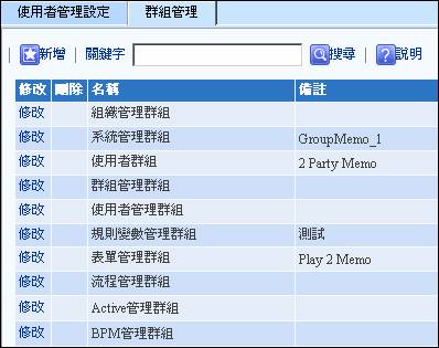 1、 點選【系統管理】下的【人員管理】之【群組管理】。 出現所有群組之明細清單︰
