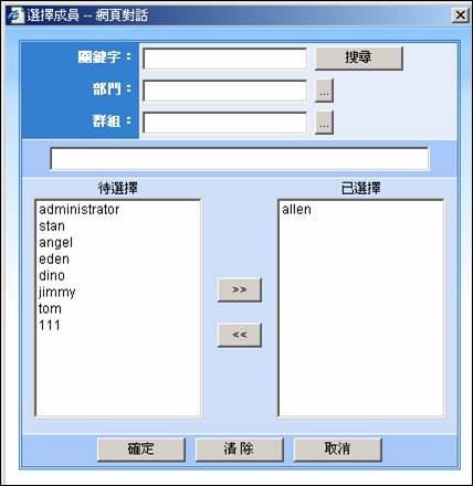 4、 群組成員︰點選【選擇成員】即可出現選擇成員的畫面︰如下圖,可以透過左右箭頭選擇群組的成員